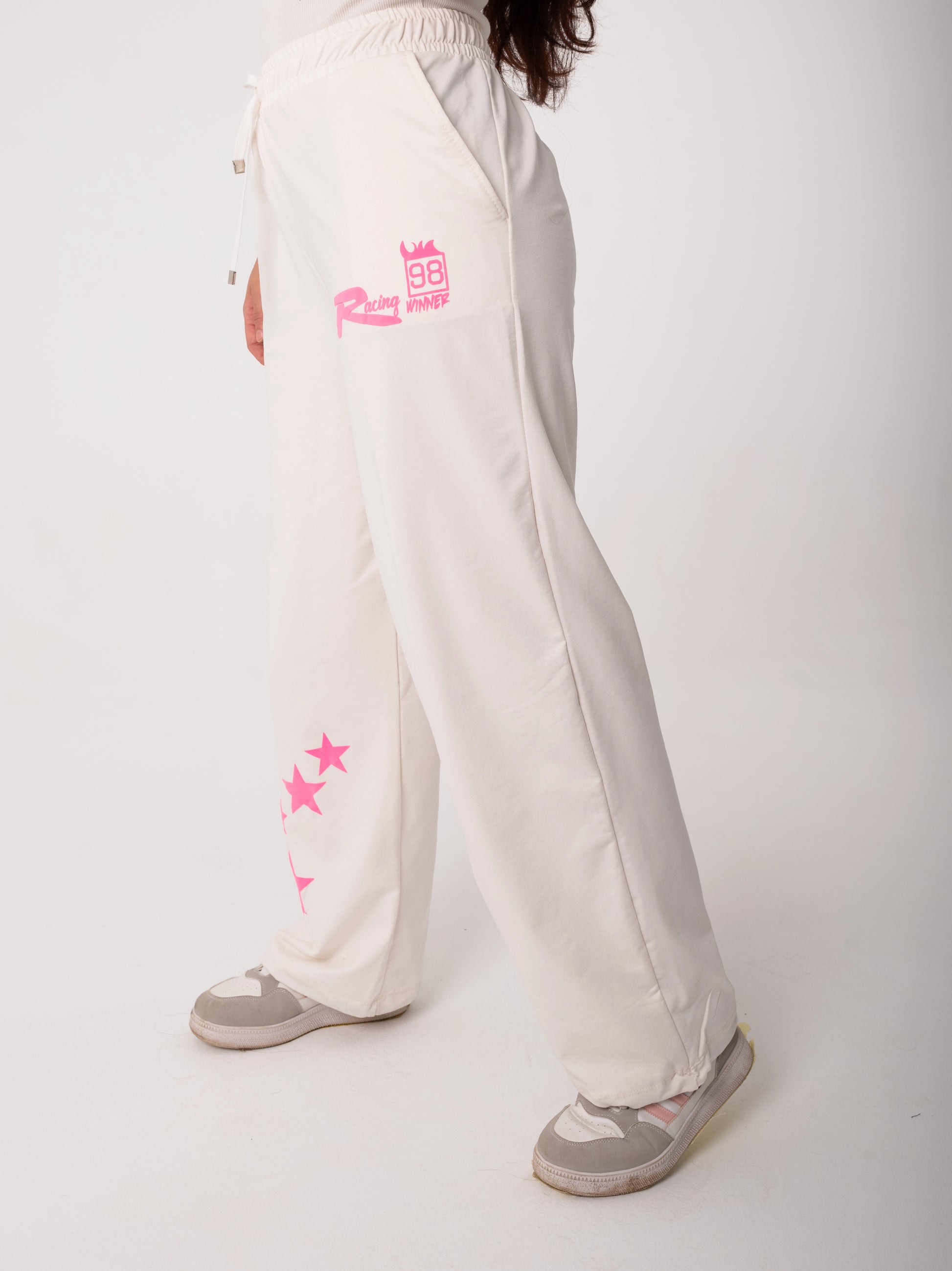 Racing One Size Wide Leg Sweatpants | White